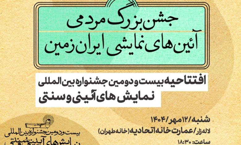 به گزارش خبرگزاری خبرآنلاین به نقل از ستاد خبری بیست‌ودومین جشنواره نمایش‌های آیینی و سنتی، آیین افتتاحیه این جشنواره شنبه داوزدهم مهرماه ساعت۱۸:۳۰ در محوطه خارجی عمارت خانه اتحادیه (خانه طهران- لاله‌زار) برگزار می‌شود.